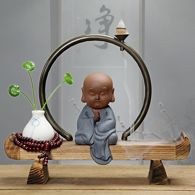 • 商品名称:中式禅意小和尚倒流香炉小沙弥风化木摆件创意家居客厅玄关装饰品